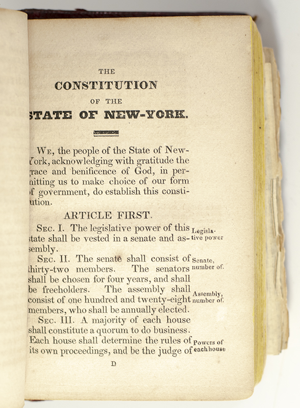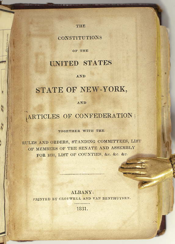 John Van Buren's first edition copy of The Constitutions of the United States and State of New-York and Articles of Confederation; with his ownership signature