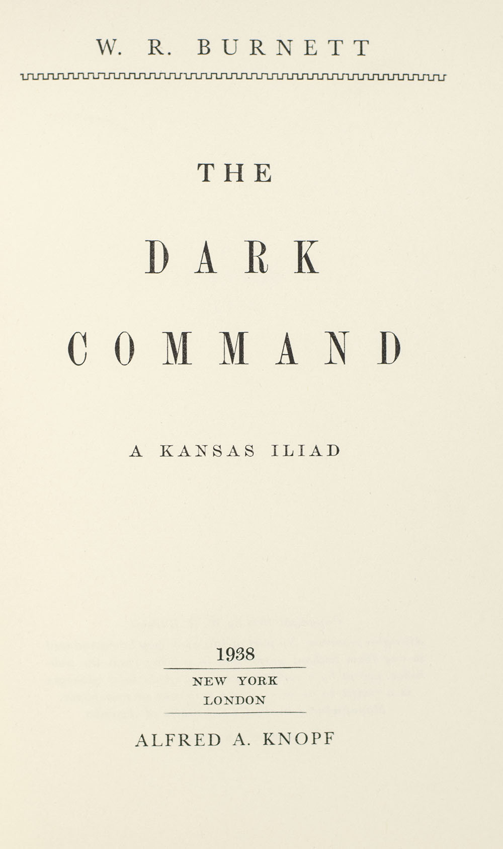 First edition of W.R. Burnett's The Dark Command: A Kansas Iliad