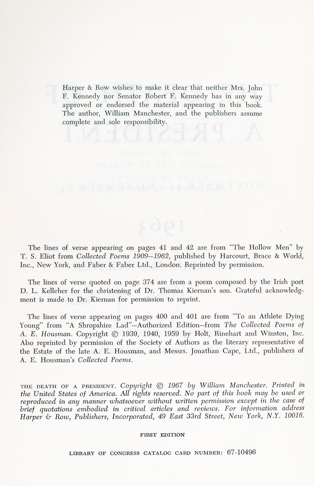 "But there are no loners. No man lives in a void. His every act is conditioned by his time and his society": First Edition of William Manchester's Classic Work The Death of a President, Signed By the author