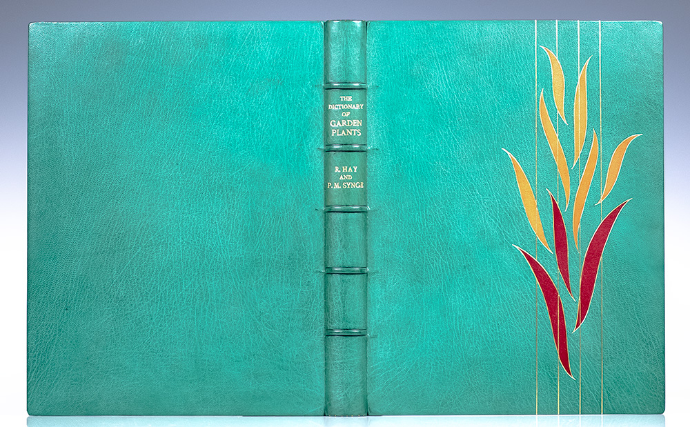 Signed limited edition of this photographic plant dictionary. Quarto, bound in the original full crushed morocco by Zaehnsdorf of London with gilt titles to the spine in six compartments within raised bands, decorative gilt morocco inlays and gilt patterning to the front panel, gilt turn-ins and inner dentelles, marbled endpapers, all edges gilt, generously illustrated with over 2,000 full-color photographs of alpine and rock gardens, annuals and biennials, greenhouse and house, bulbs, perennial, trees and shrubs, and climbers and conifers. One of only two hundred and sixty-five copies signed by the authors on the limitation page, this is number 53. In near fine condition. Housed in the original clamshell case.