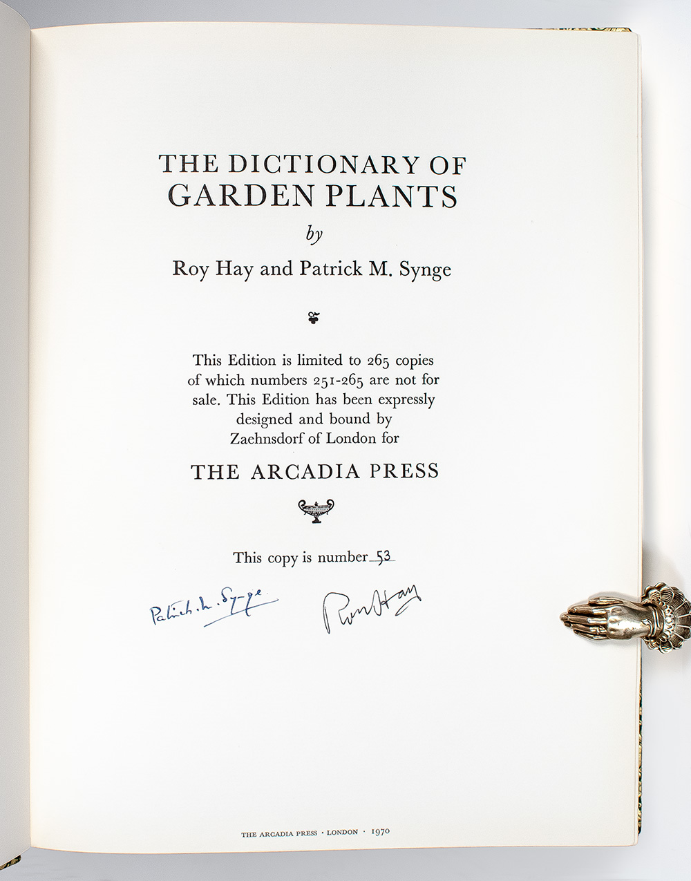 Limited Edition of The Dictionary of Garden Plants; Signed by Roy Hay and Patrick M. Synge