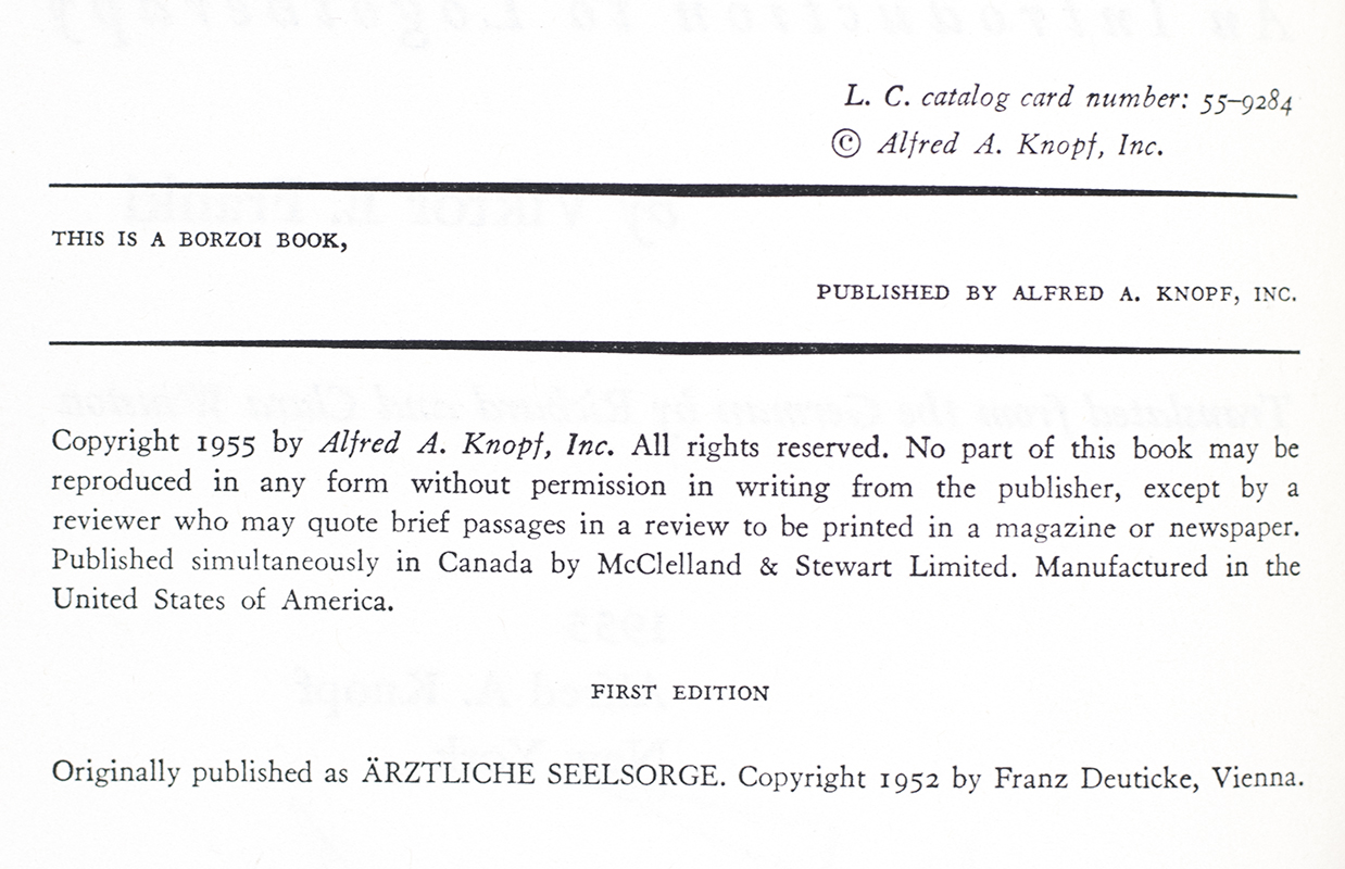 “The destiny a person suffers therefore has a twofold meaning: to be shaped where possible, and to be endured where necessary": First Edition of Viktor E. Frankl's The Doctor and the Soul; Signed by Him