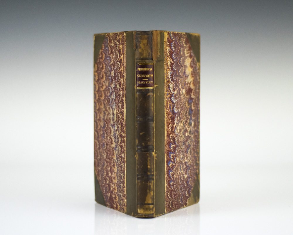 First edition of one of the major metaphysical works of 18th-century British polymath Joseph Priestley, which influenced the 19th-century utilitarians John Stuart Mill and Herbert Spencer. Octavo, bound in three quarters 19th century calf over marbled boards, all edges marbled. In excellent condition, contemporary name on the title page, a nice clean example.