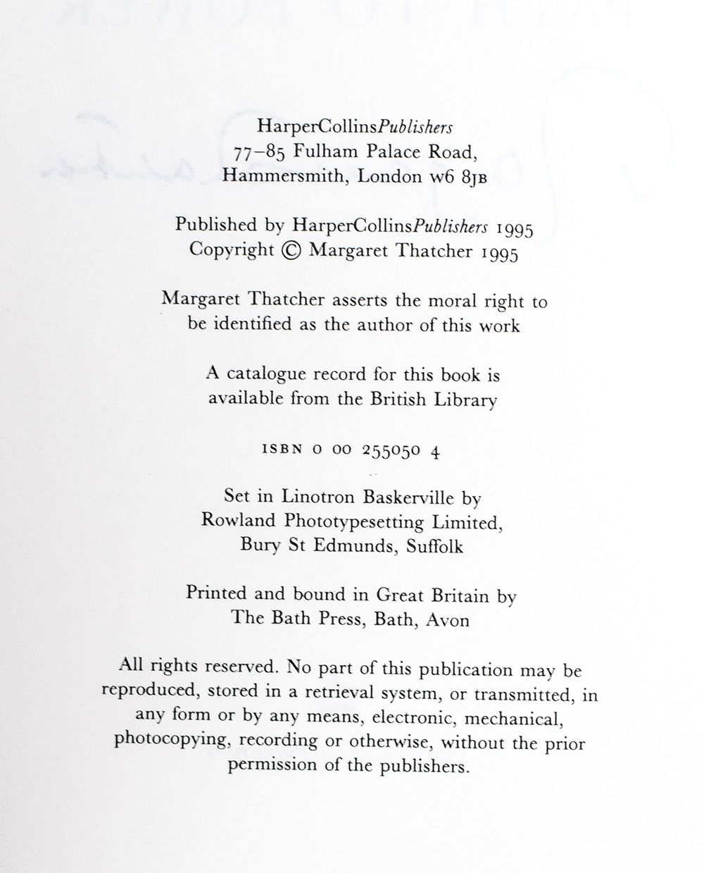 First Editions of The Downing Street Years and The Path to Power; signed by Margaret Thatcher
