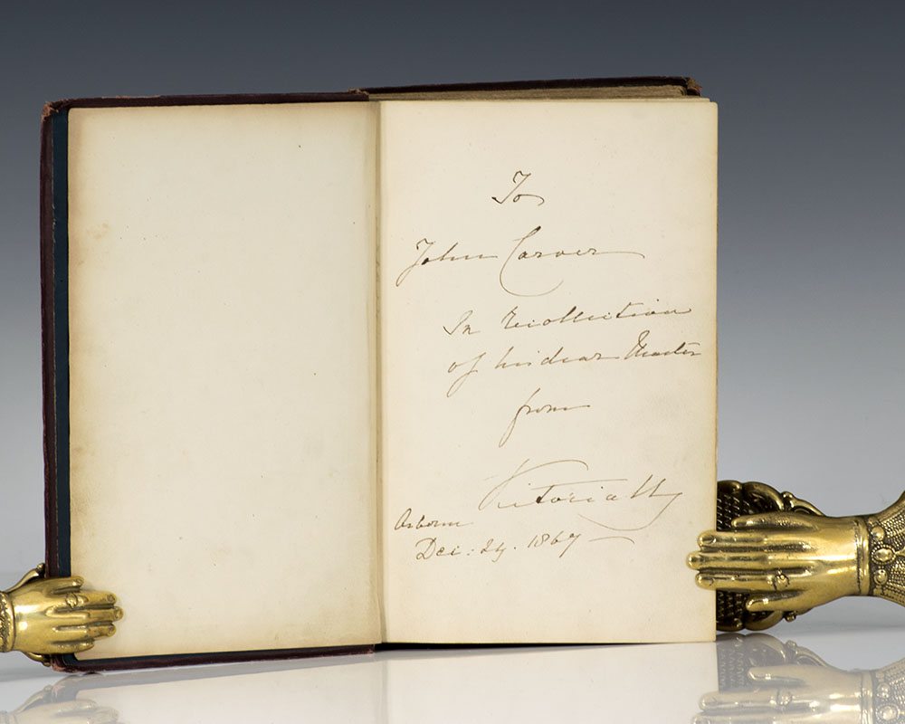 First edition. Octavo, original cloth. Inscribed by Queen Victoria on the half-title page in the year of publication, "To John Carver In recollection of his dear Master from Victoria R.I. 24th December 1867." In very good condition with some light rubbing and wear. Rare and desirable signed by Queen Victoria.