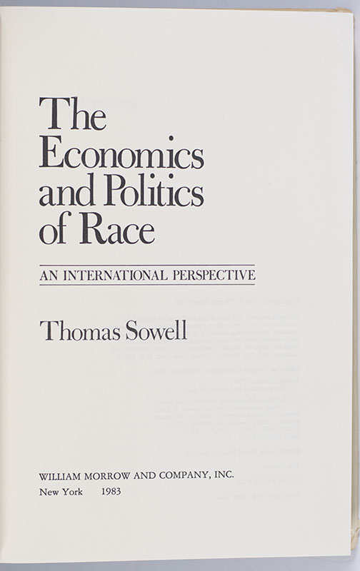 First Edition of Thomas Sowell's The Economics and Politics of Race; Warmly Inscribed by Him