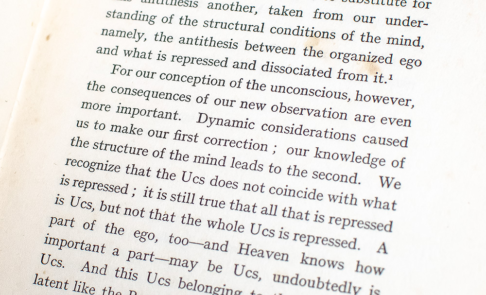 First edition in English of Sigmund Freud's The Ego and the Id; Published by Leonard & Virginia Woolf at the Hogarth Press