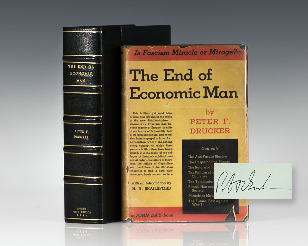 First Edition of Peter Drucker’s Classic First Book The End of Economic Man; Signed by Him