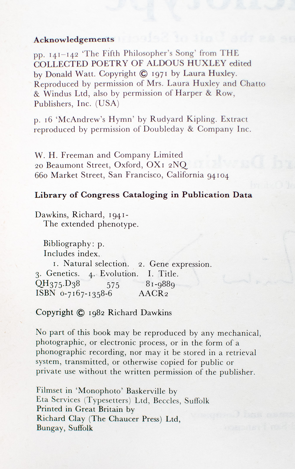First Edition of The Extended Phenotype; Signed by Richard Dawkins