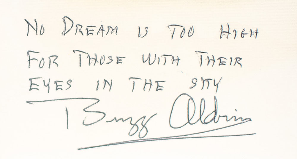 "No Dream Is Too High For Those with Their Eyes in the Sky": First Edition of H.G. Wells' The First Men in the Moon; With a note card lengthily signed by Buzz Aldrin