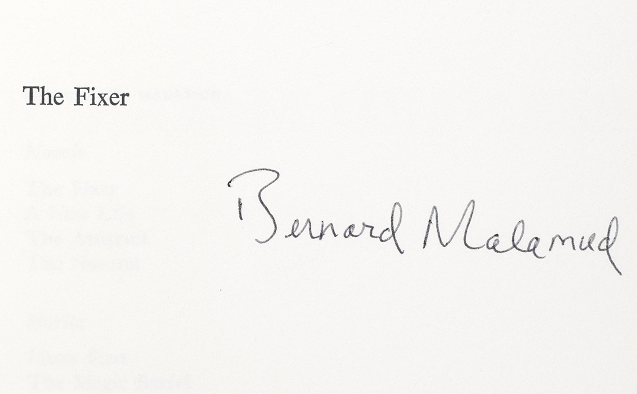 First edition of the author's fourth novel, which went on to win the National Book Award and the Pulitzer Prize. Octavo, original cloth. Signed by Bernard Malamud on the title page. Near fine in a near fine dust jacket that shows some light wear. Jacket design by Janet Halverson.