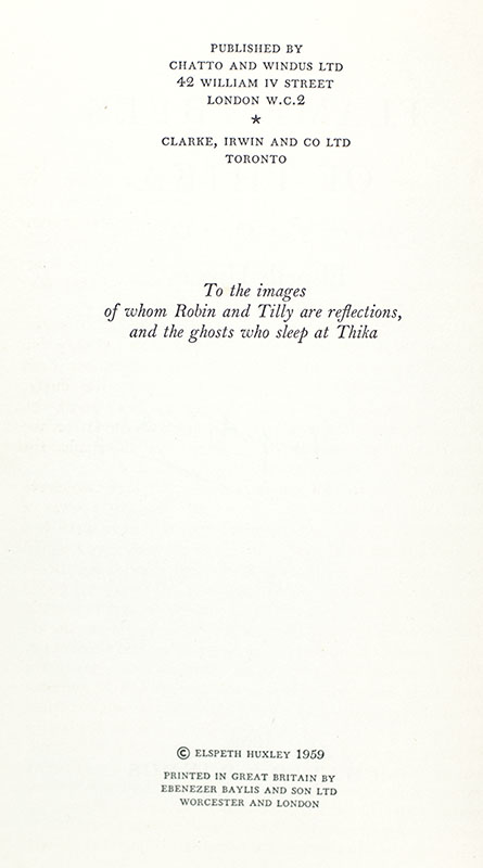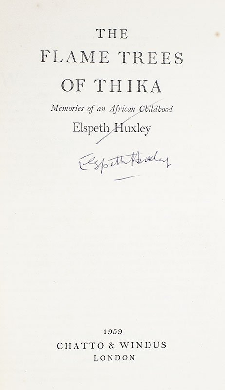 "How much does one imagine, how much observe? One can no more separate those functions than divide light from air, or wetness from water": First Edition of Elspeth Huxley's The Flame Trees of Thika; Signed by Her