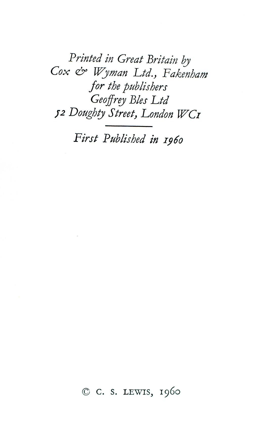 London: Geoffrey Bles, 1960.