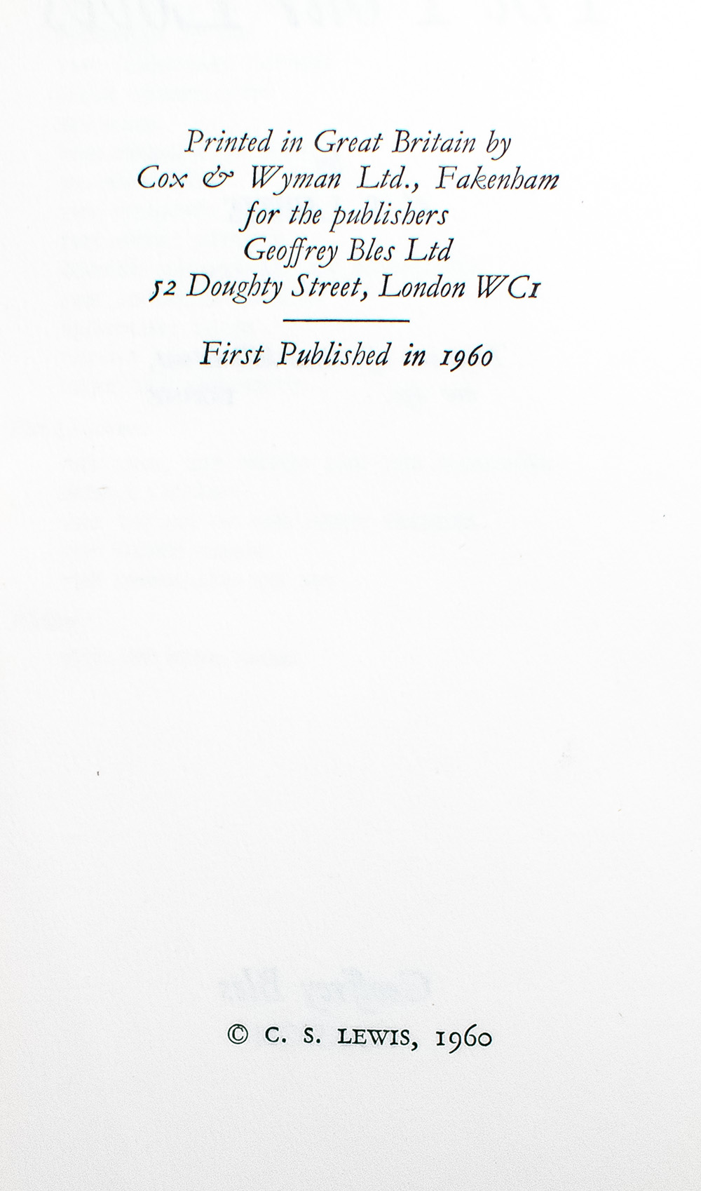 “You have not chosen one another, but I have chosen you for one another": First Edition of C.S. Lewis' The Four Loves