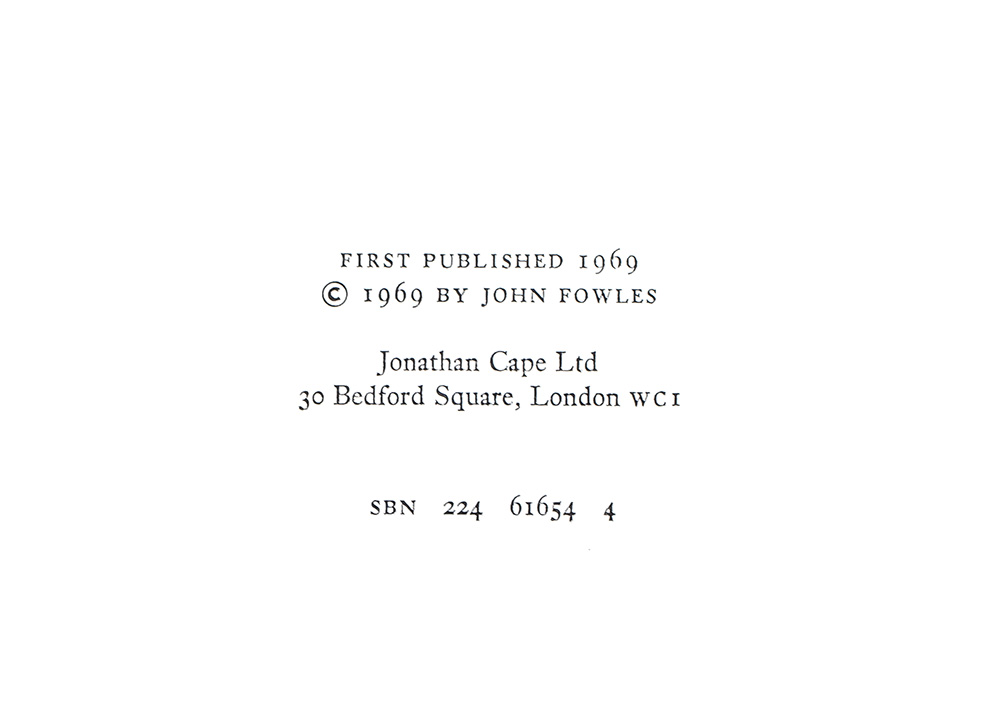 Early printing of Fowles' classic third novel. Octavo, original brown cloth, pictorial endpapers. Signed and dated by John Fowles on the title page. Fine in a near fine dust jacket. Endpaper drawing by Tom Adams.