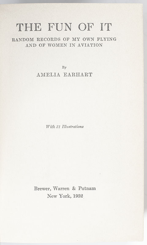 "Never interrupt someone doing what you said couldn't be done": First Edition of Amelia Earhart's The Fun of It; Signed by Her; In the rare original dust jacket