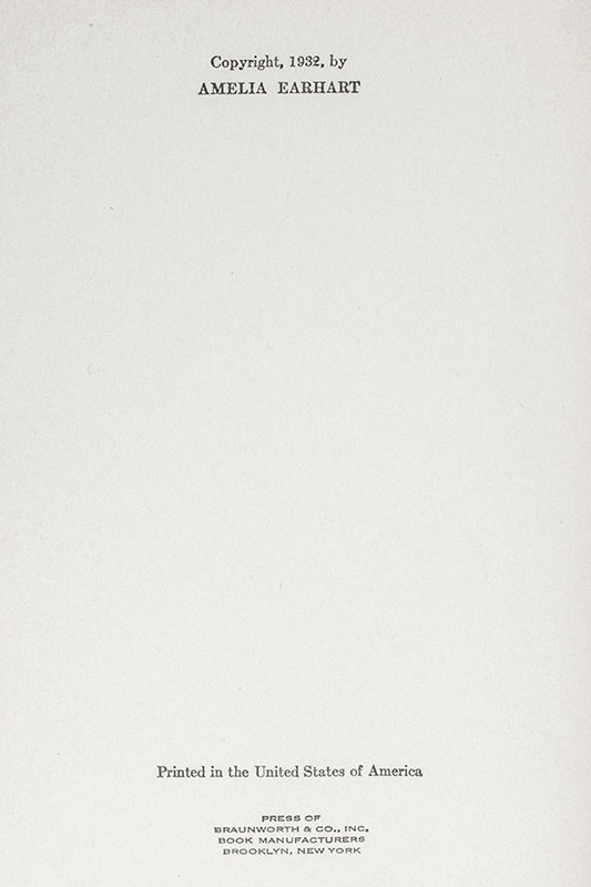First edition of Earhart's account of her childhood, her fascination with aviation, and her life through her 1932 flight across the Atlantic. Octavo, original cloth, illustrated throughout. Signed by Amelia Earhart. With the rare original silvertone phonograph recording of her internationally broadcast speech given the day she completed her solo transatlantic flight. Near fine in the rare original dust jacket with light toning to the spine.