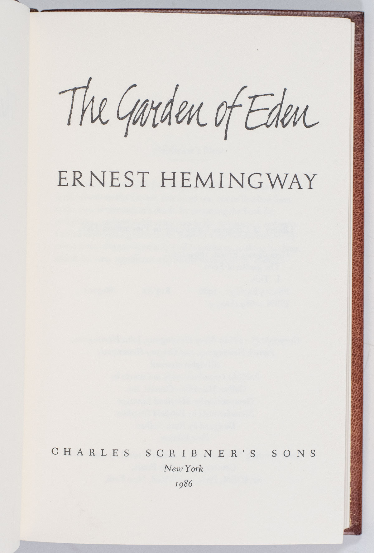 “When you start to live outside yourself, it's all dangerous": First Edition of Ernest Hemingway's The Garden of Eden; Finely Bound by The Harcourt Bindery