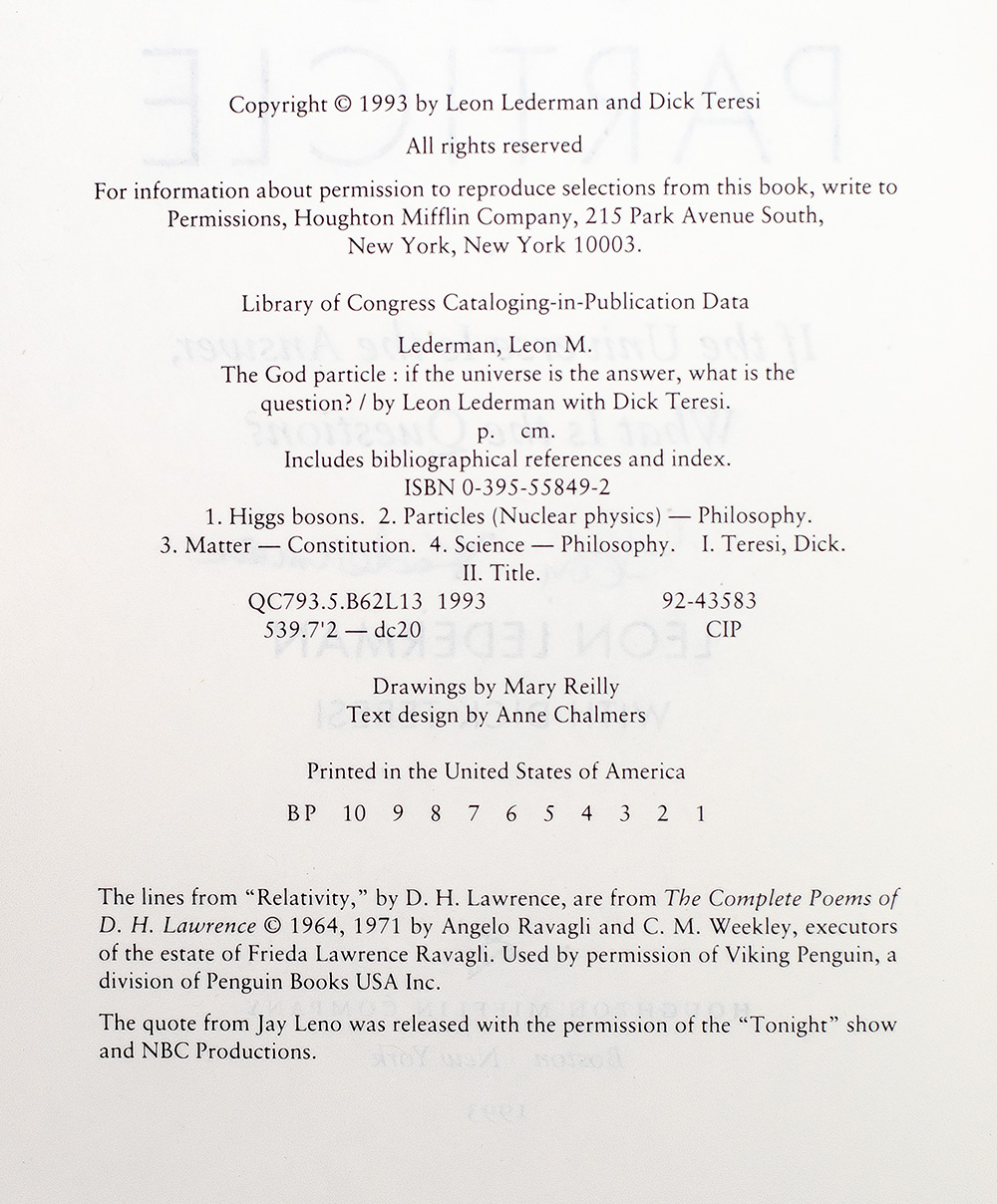First Edition of THE GOD PARTICLE; Signed by Nobel Prize-winning Physicist Leon Lederman