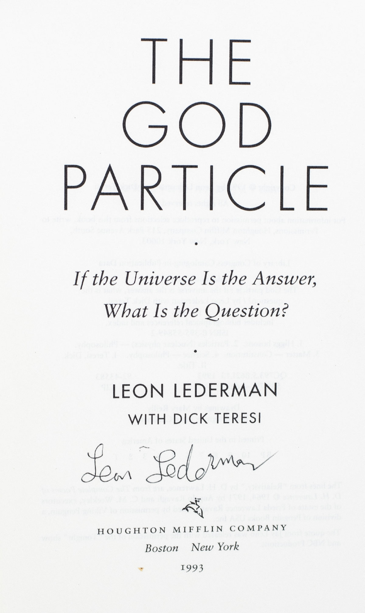 First Edition of THE GOD PARTICLE; Signed by Nobel Prize-winning Physicist Leon Lederman
