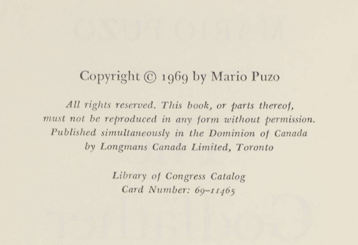 "WE WILL MANAGE OUR WORLD FOR OURSELVES BECAUSE IT IS OUR WORLD, COSA NOSTRA": FIRST EDITION OF THE GODFATHER; SIGNED BY MARIO PUZO and FRANCIS FORD COPPOLA