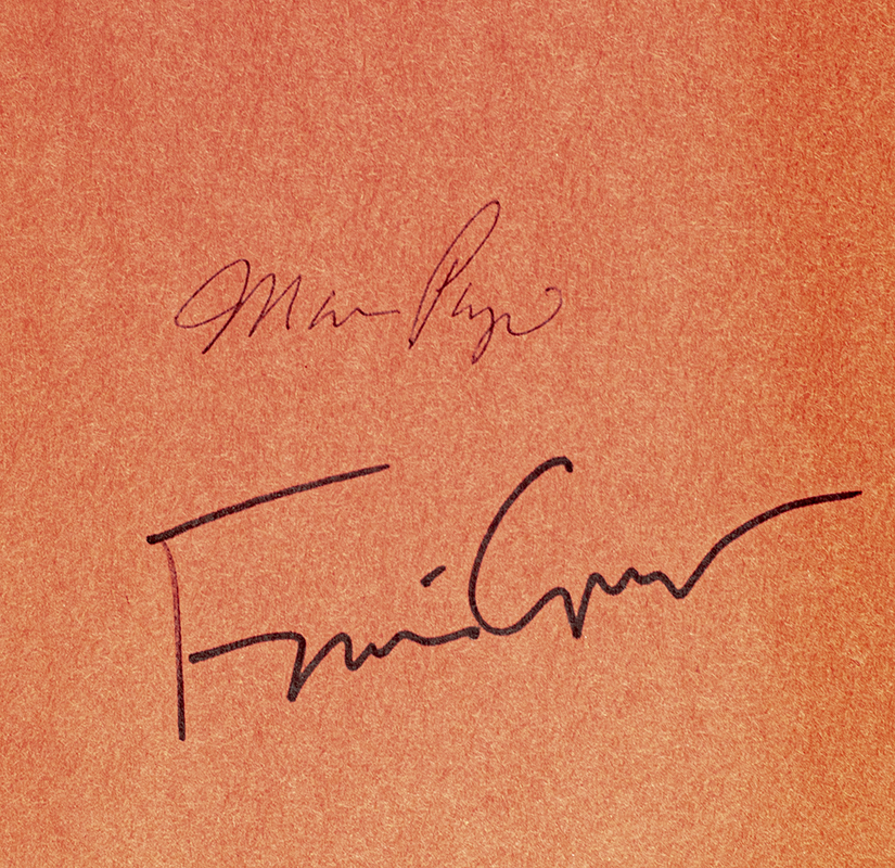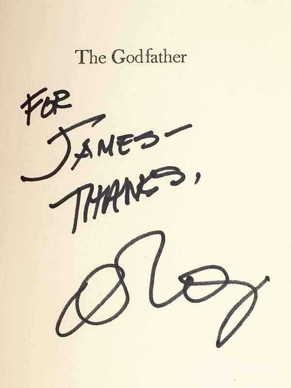 First edition of Puzo's definitive novel of the Mafia underworld. Octavo, original half black cloth. Boldly signed by both Mario Puzo and director Francis Ford Coppola on the the front free endpaper and on the half-title page, by producer Albert Ruddy, "For James- Thanks- Albert." Puzo, Coppola and Ruddy each  won an Oscar for The Godfather. Near fine in a very good dust jacket. Jacket art by S. Neil Fujita.