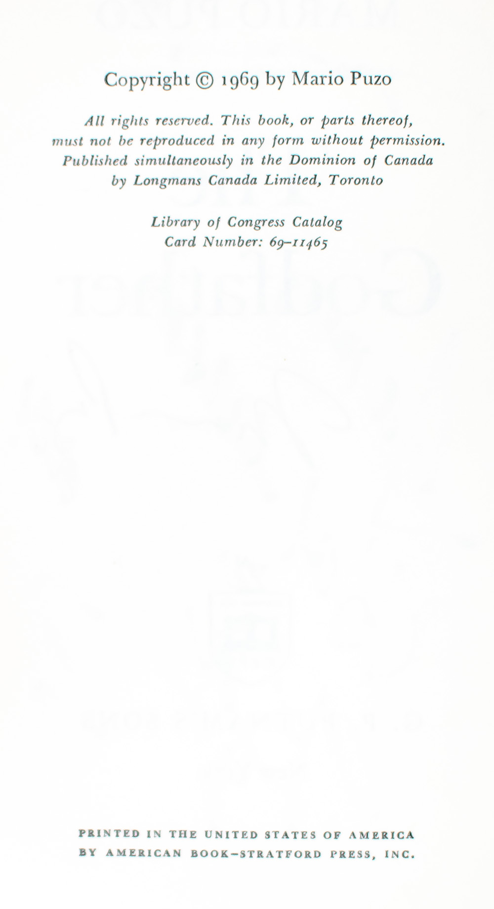 "Great men are not born great, they grow great": FIRST EDITION OF THE GODFATHER; SIGNED BY MARIO PUZO, Francis Ford Coppola and Robert Duvall