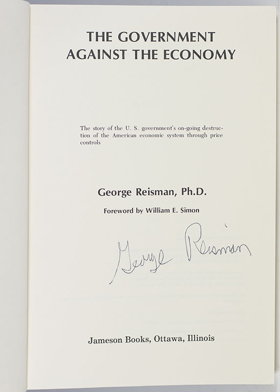 First edition, early printing of Reisman's argument against regulated price controls. Octavo, original wrappers. Signed by George Reisman on the title page. In near fine condition.