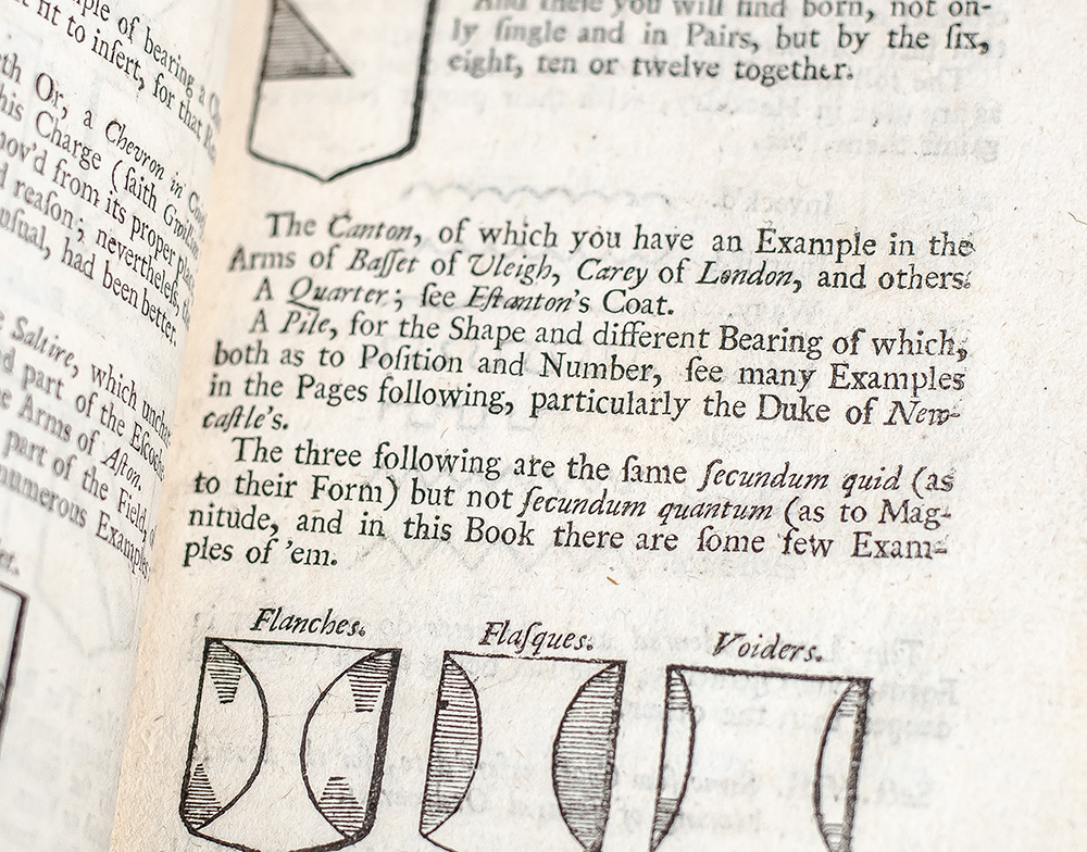Rare first edition of this illustrated book on heraldry by Samuel Kent, who was one of the most renowned authorities in this field. Each page contains several (mostly five) coat of arms with captions. Small octavo, bound in full calf, gilt titles and tooling to the spine, morocco spine labels, raised bands, inner dentelles. Rare and desirable.