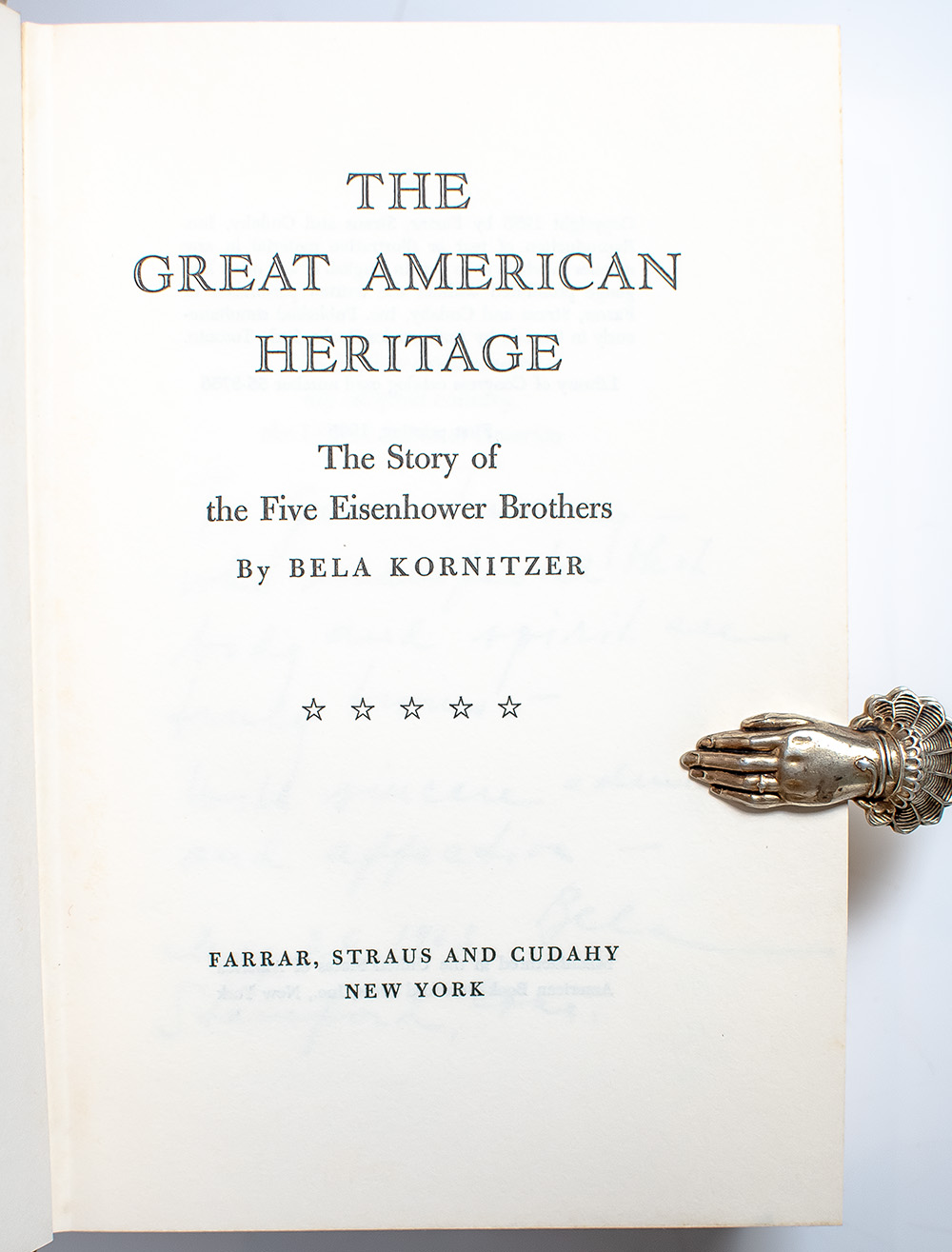 First Edition of The Great American Heritage: The Story of the Five Eisenhower Brothers; Warmly Inscribed Bela Kornitzer to Boxing Legend Gene Tunney
