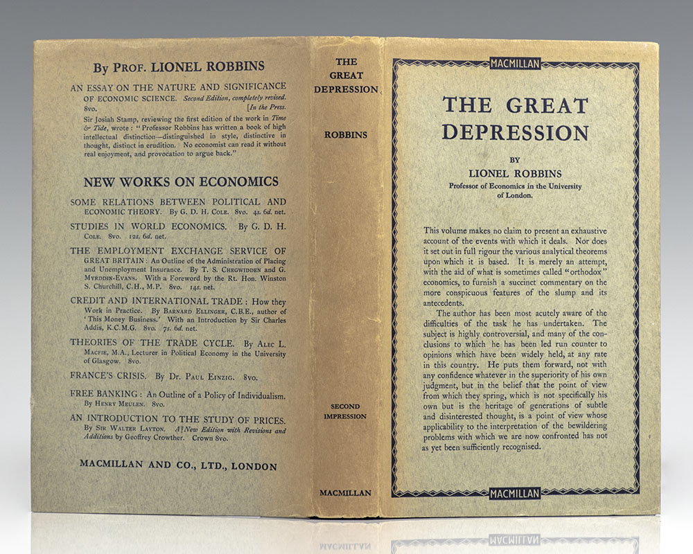 First Edition of Lionel Robbins The Great Depression; In the Rare Original Dust Jacket