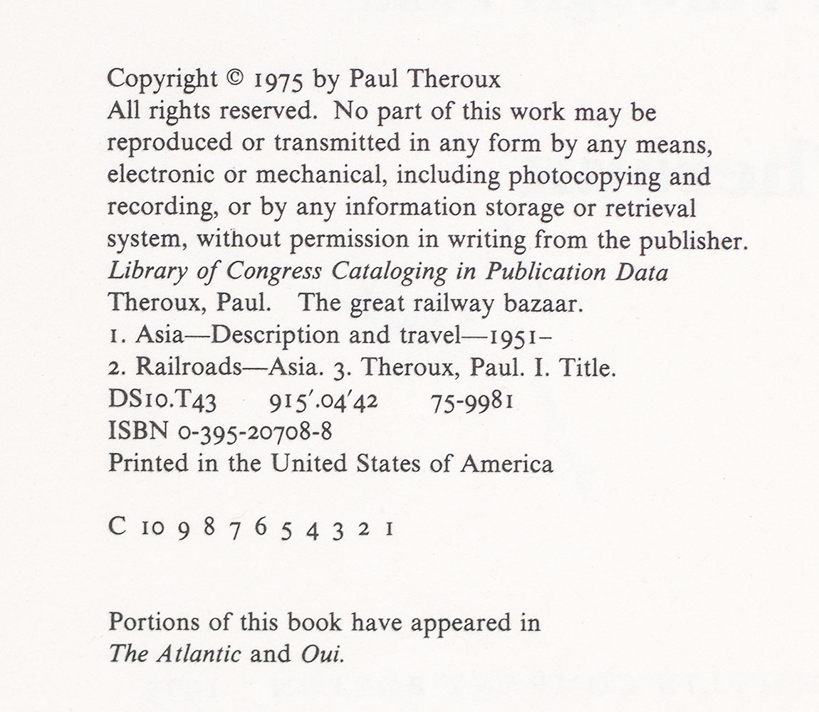 First Edition of Paul Theroux's The Great Railway Bazaar: By Train Through Asia; Signed by Him