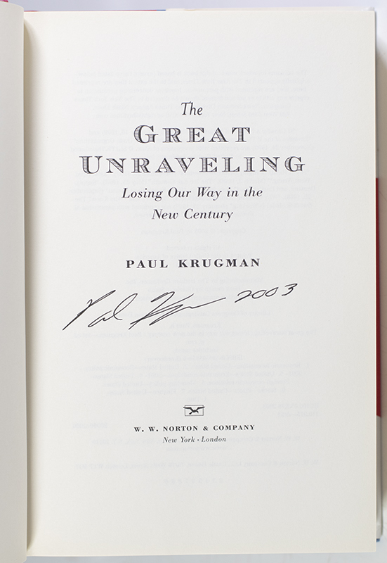 Paul Krugman's The Great Unraveling: Losing Our Way in the New Century; Signed by Him