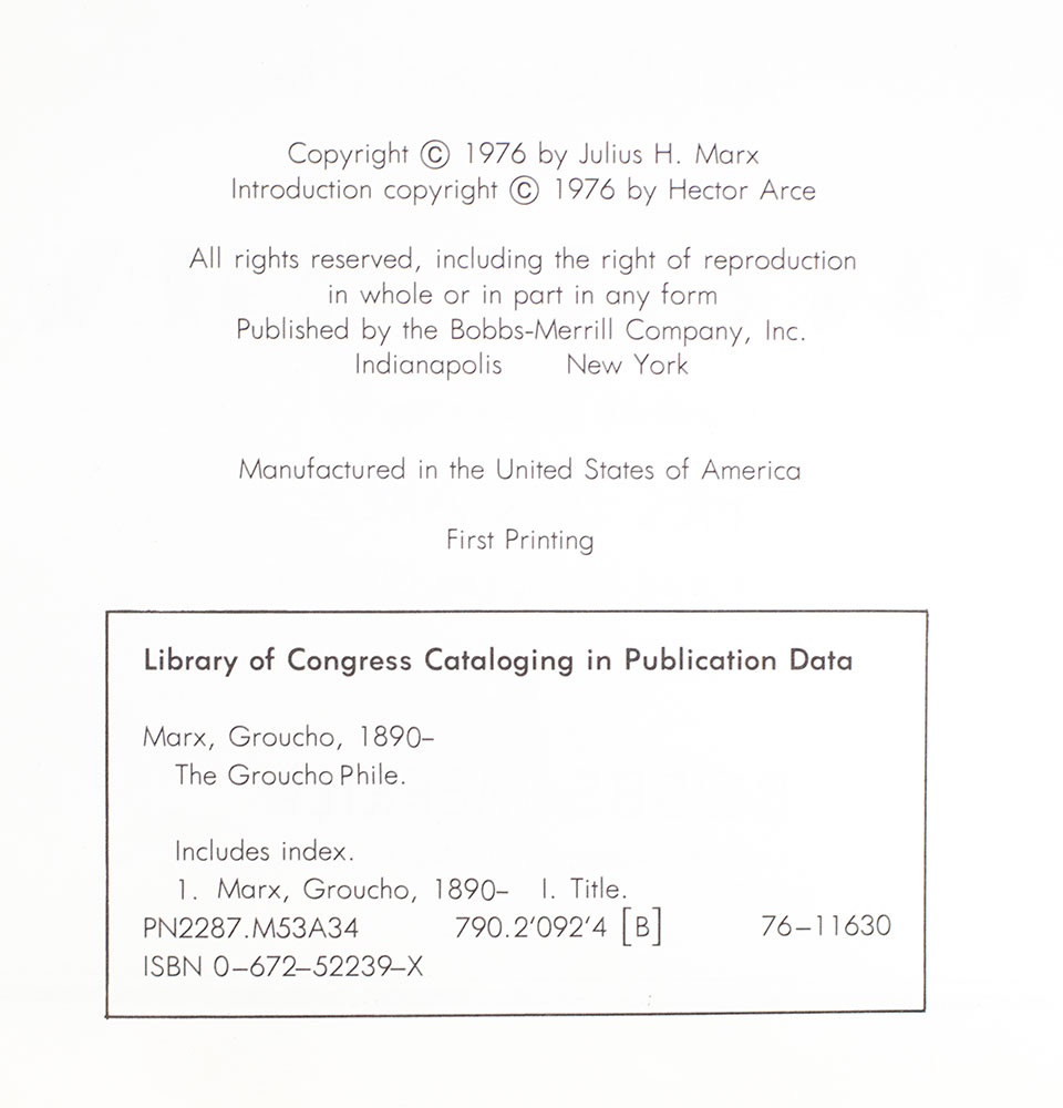 “Learn from the mistakes of others. You can never live long enough to make them all yourself": First Edition of The Groucho Phile; Inscribed twice by Goucho Marx To Actress Sally Kellerman