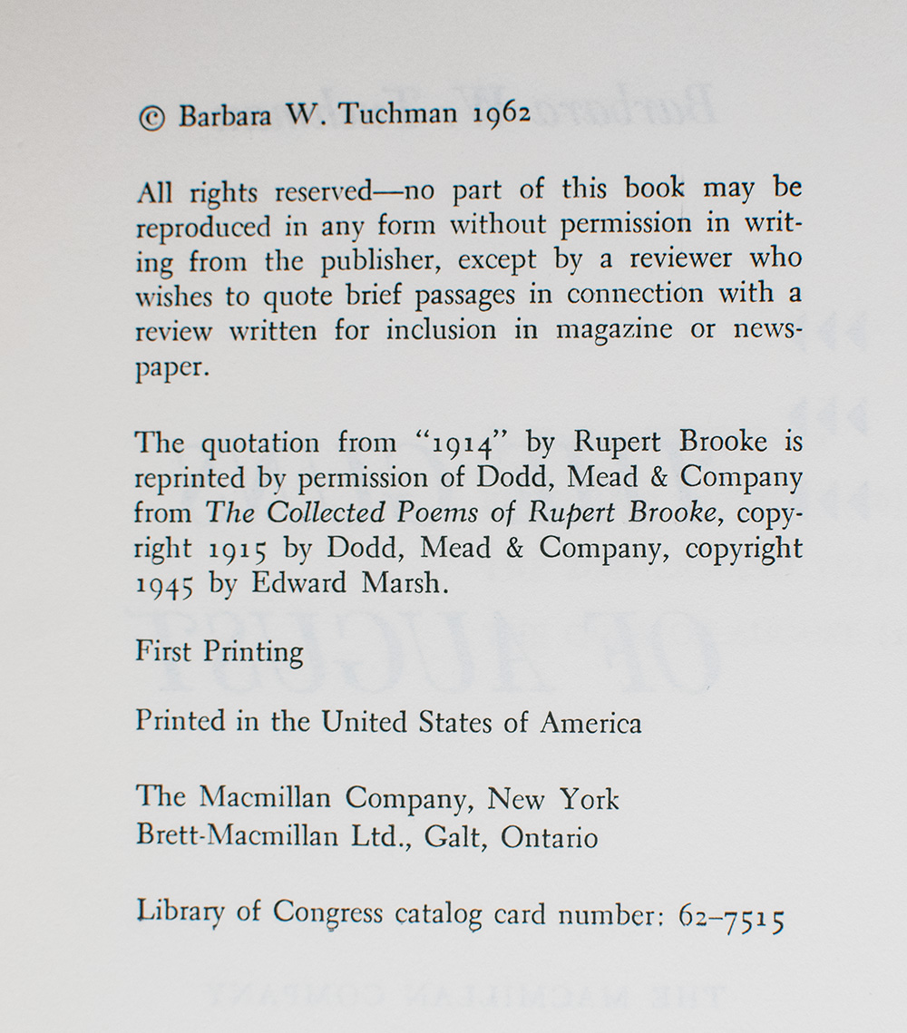 “Honor wears different coats to different eyes": First Edition of Barbara Tuchman's The Guns of August