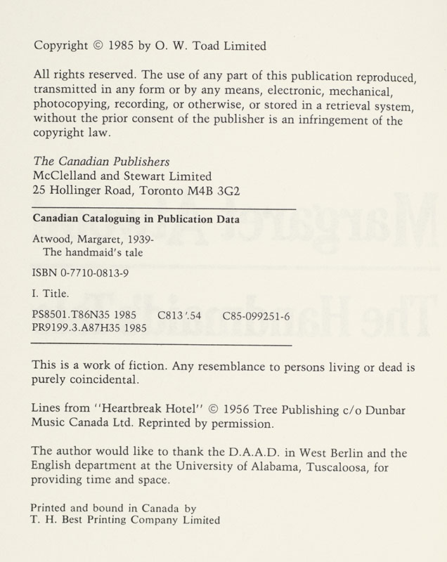 “When we think of the past it's the beautiful things we pick out": First Edition of Margaret Atwood's The Handmaid's Tale; Signed by Her