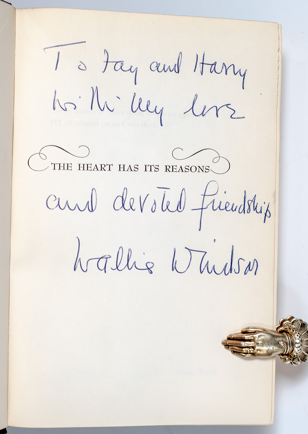 The Heart Has Its Reasons: The Memoirs of the Duchess of Windsor; Inscribed by Her to Ambassador Henry Taylor and with an original telegram