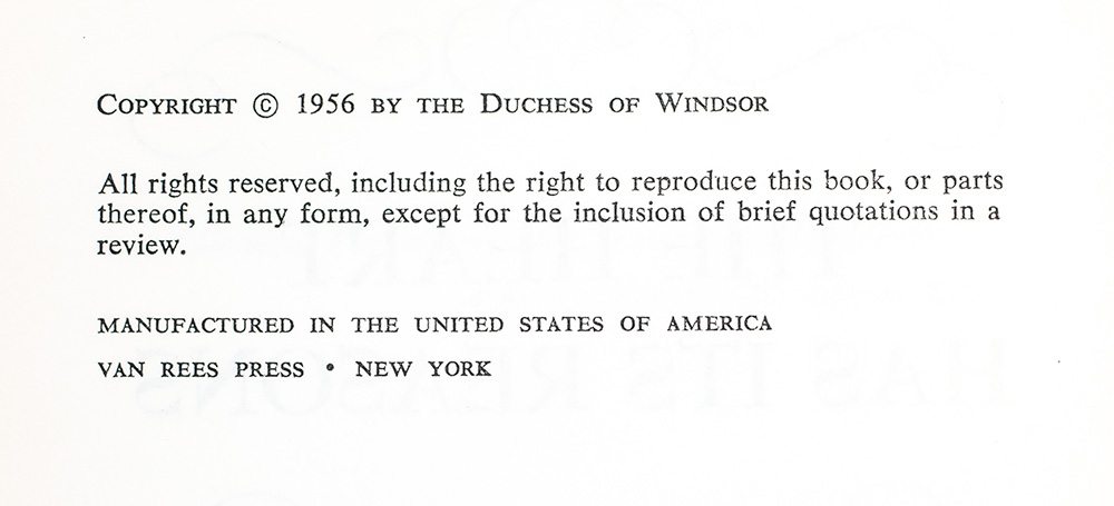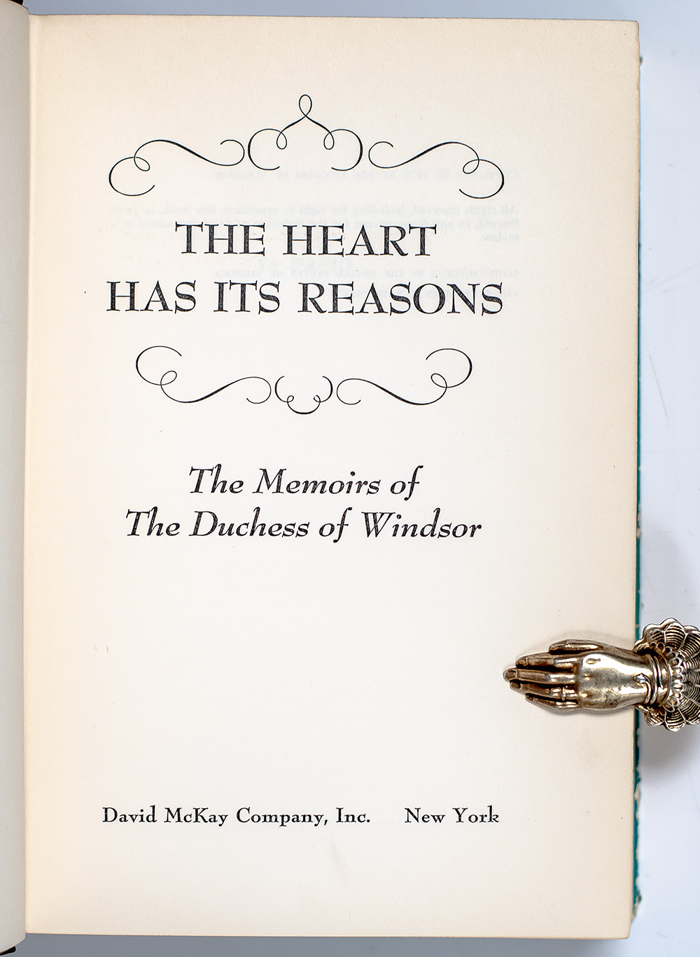 The Heart Has Its Reasons: The Memoirs of the Duchess of Windsor.