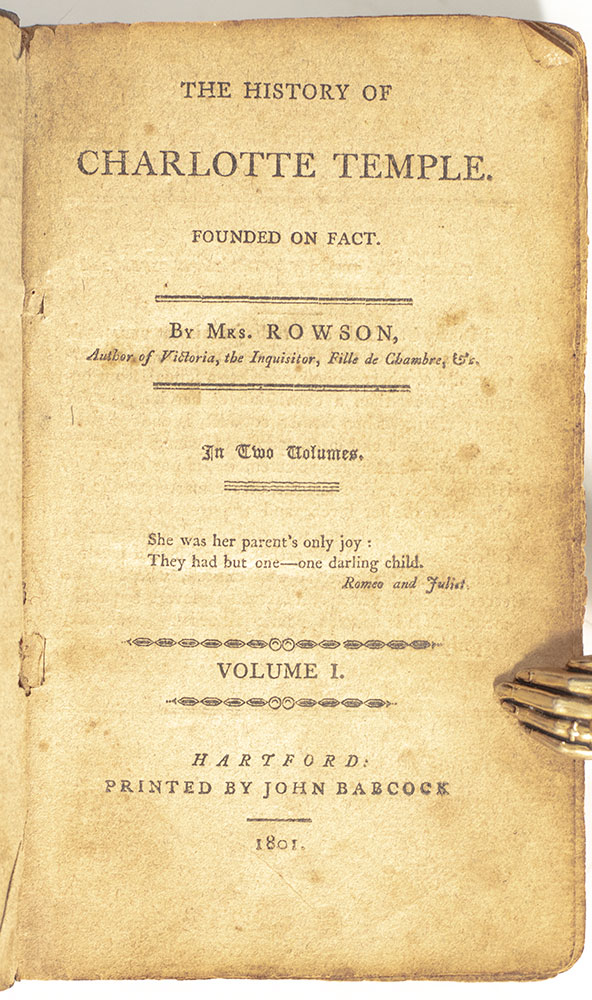 "THE FIRST AMERICAN BESTSELLER": RARE EARLY AMERICAN PRINTING OF SUSANNA HASWELL ROWSON'S The History of Charlotte Temple