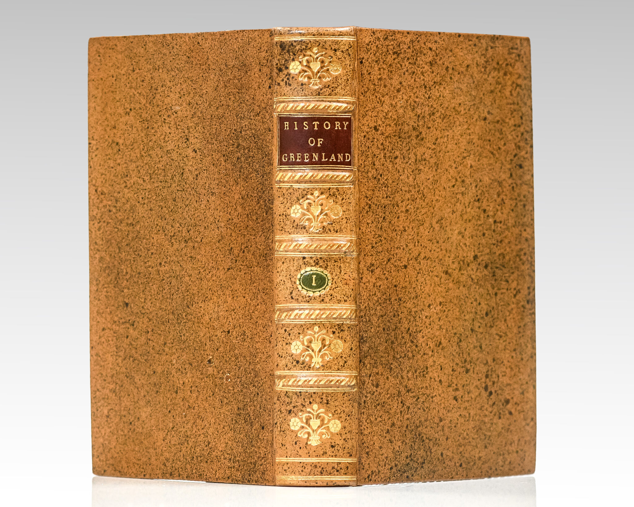 First edition in English of Crantz's elaborate account of the history of Greenland. first published in German in 1765. Octavo, two volumes bound in full period-style full speckled calf with morocco spine labels lettered in gilt, gilt stamping to the spine in six compartments within raised gilt bands, illustrated with two folding maps and seven copperplate engravings. Arctic Bibliography 3471. Sabin 17417. Ricks 72. In near fine condition. An excellent, very handsomely bound set.