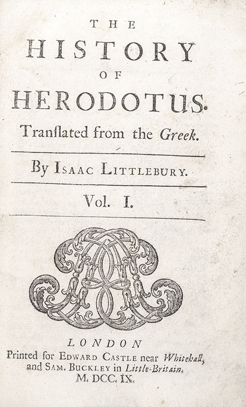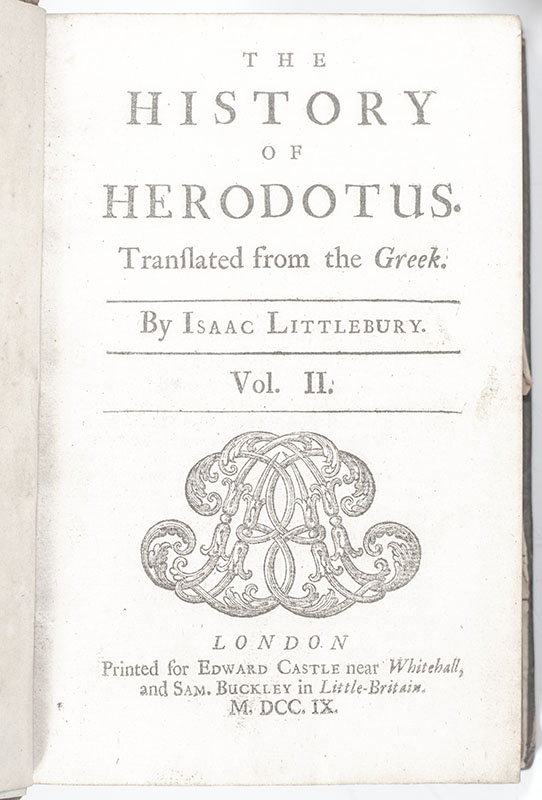 First complete edition in English of The History of Herodotus; translated by Isaac Littlebury