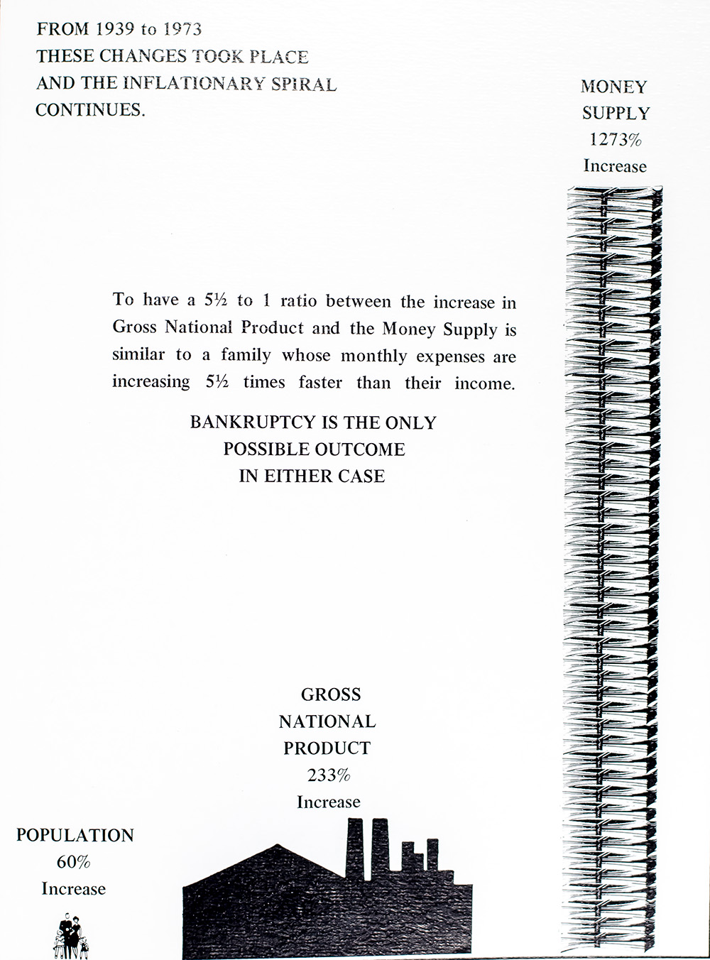 Rare first edition of this work on the history of money. Octavo, original wrappers, 32 pp. Contents: I. The American Illusion of Invulnerability, II. The Four Stages of Monetary Decline, III. The End of the Gold-Backed Dollar, IV. Printing Press Prosperity, V. The Problem with Inflation Addiction, VI. Exponential Inflation and the $100 Cup of Coffee, VII. The Point of No Return, VIII. Five Ways You Can Protect Yourself and Your Family Against the Double-Barreled Thread of Runaway Inflation and Depression., IX. The Silver Lining - Your Investment Opportunity, X. How Will My Family and I Be Affected -- End. This is an extremely scarce Julian Snyder title published in 1973, the year Nixon took the United States off the gold-backed dollar. Julian Snyder was a self-described international economist and ran a publishing company in the 1970s and 80s called the International Moneyline Press. Snyder himself was a constant fixture in the New York financial world during that period and wrote several other books including, Rules for Financial Survival in the 1980's and The Way of the Hunter-Warrior: How to Make a Killing in Any Market. While he was much of a perma-bear based on the central bank's money printing policies, many of his market doomsday predictions failed to play out. In a 1978 Washington Post article he did end up nailing the 1980 Fed Interest Rate at 15% to 20%. The rate peaked at 18% in 1980 -- in 1978, at the time of his prediction, it was just 7.5% -- gotta give him that one. He was also a student Nikolai Kondratieff and his cycle theories. Scarce title from this outspoken economic character from the 70s and 80s.