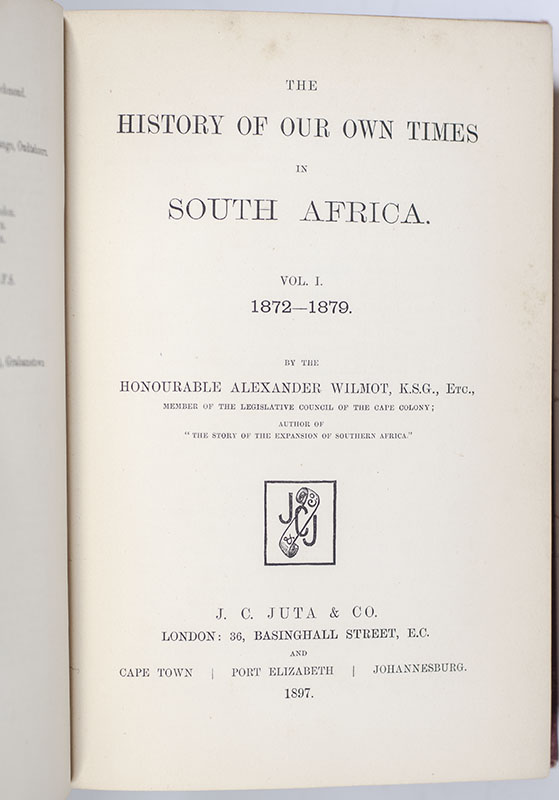 First edition of Alexander Wilmot's The History of Our Own Times in South Africa