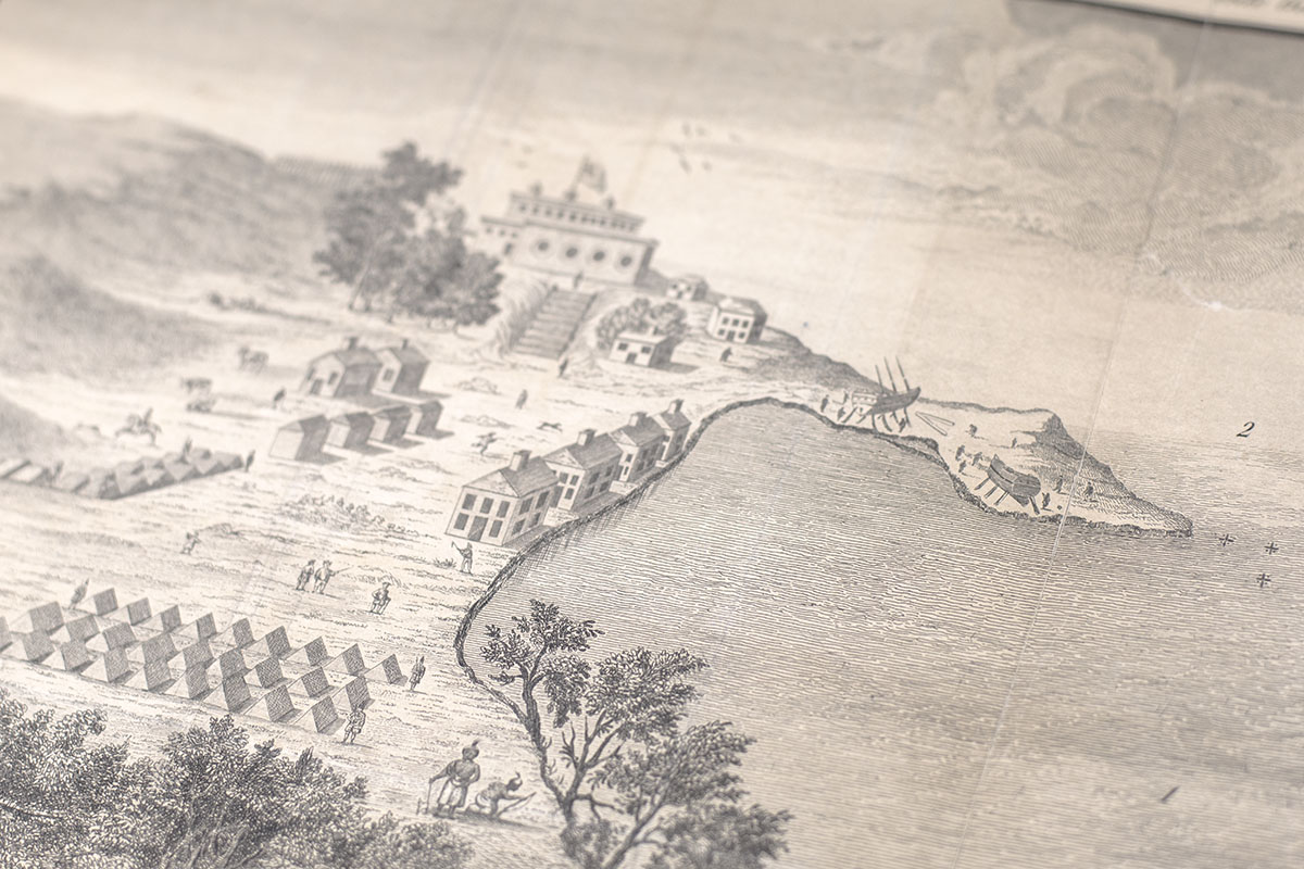 First edition of the "first and classic history of New York" (Streeter), illustrated with the folding plate view of Fort Oswego on Lake Oswego. Quarto, bound in three-quarters calf over brown cloth-covered boards, gilt titles to the spine, morocco spine label. In very good condition with some small repairs to the verso of the map, signature to the title page, late 18th century manuscript poem from the New York Daily Gazetteer of November 16, 1790 on p. (vi). Housed in a custom clamshell box. Howes S 703; Sabin 84566; Church 1023; ESTC T36514.