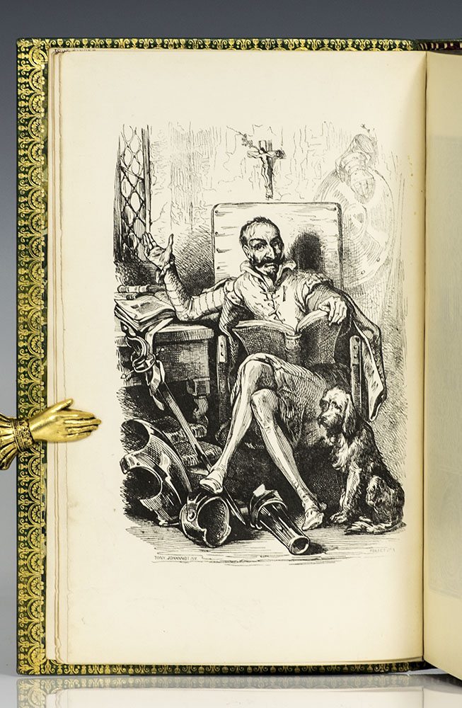 “The truth may be stretched thin, but it never breaks, and it always surfaces above lies, as oil floats on water": Finely Bound Set of Cervantes' Masterpiece Don Quixote de la Mancha; With illustrations by Tony Johannot