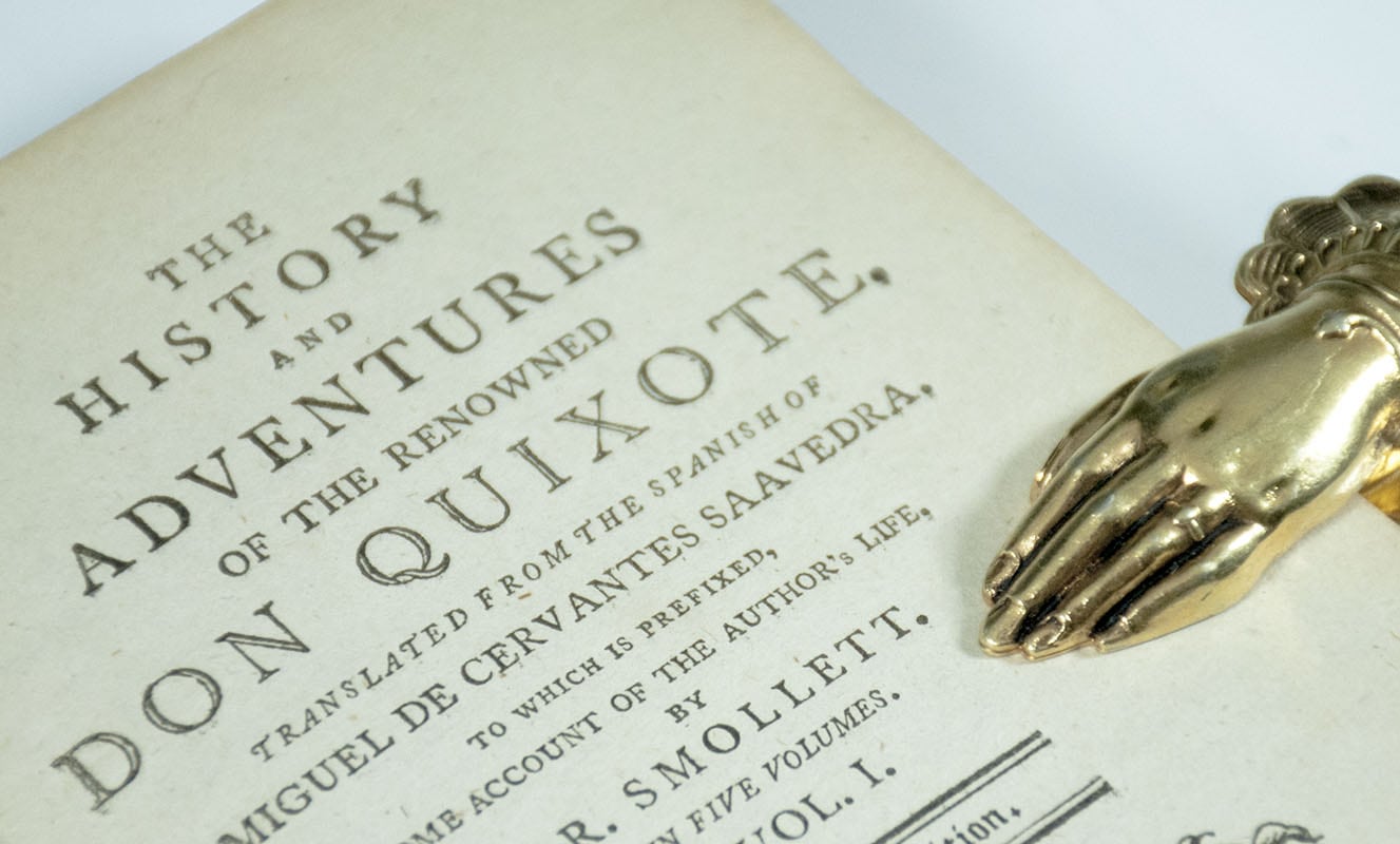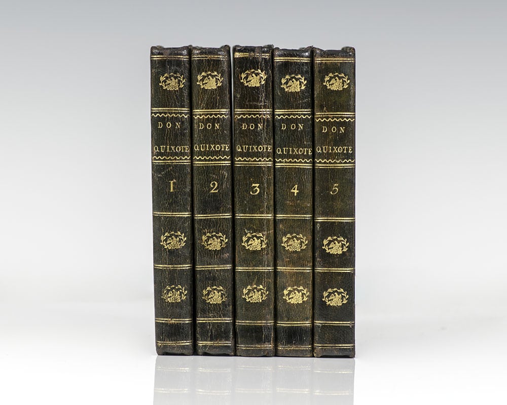 Finely bound example of Cooke's edition of Cervantes' masterpiece. Small octavo, 5 volumes bound in contemporary three quarters calf, gilt titles and tooling to the spine, illustrated. Translated from the Spanish by Tobias Smollett. In very good condition.