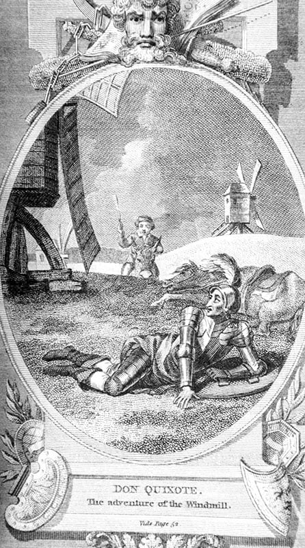 Don Quixote tells the tale of a man so entranced by reading about the chivalrous romantic ideals touted in books that he decides to take up his sword and become a knight-errant himself, with the aims of defending the helpless and warding off the wicked. With his somewhat confused laborer-turned-squire, Sancho Panza, they roam the world together and have adventures that have haunted reader's imaginations for nearly four hundred years. Don Quixote is generally recognized as the first modern novel. Over those years, it has had an incredible influence on thousands of writers, from Dickens to Faulkner, who once said he reread it once a year, "just as some people read the Bible". Vladimir Nabokov said of the book, "Don Quixote is greater today than he was in Cervantes's womb. [He] looms so wonderfully above the skyline of literature, a gaunt giant on a lean nag, that the book lives and will live through [his] sheer vitality... He stands for everything that is gentle, forlorn, pure, unselfish, and gallant. The parody has become a paragon."
