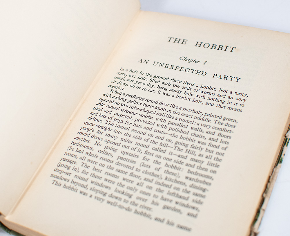 Exceedingly rare first edition, first issue presentation copy of J.R.R. Tolkien's The Hobbit; inscribed by Tolkien to the Livesleys who ran the summer guest cottage in the village of Sidmouth which inspired 'The Shire' and where Tolkien did much of his writing and in the original dust jacket