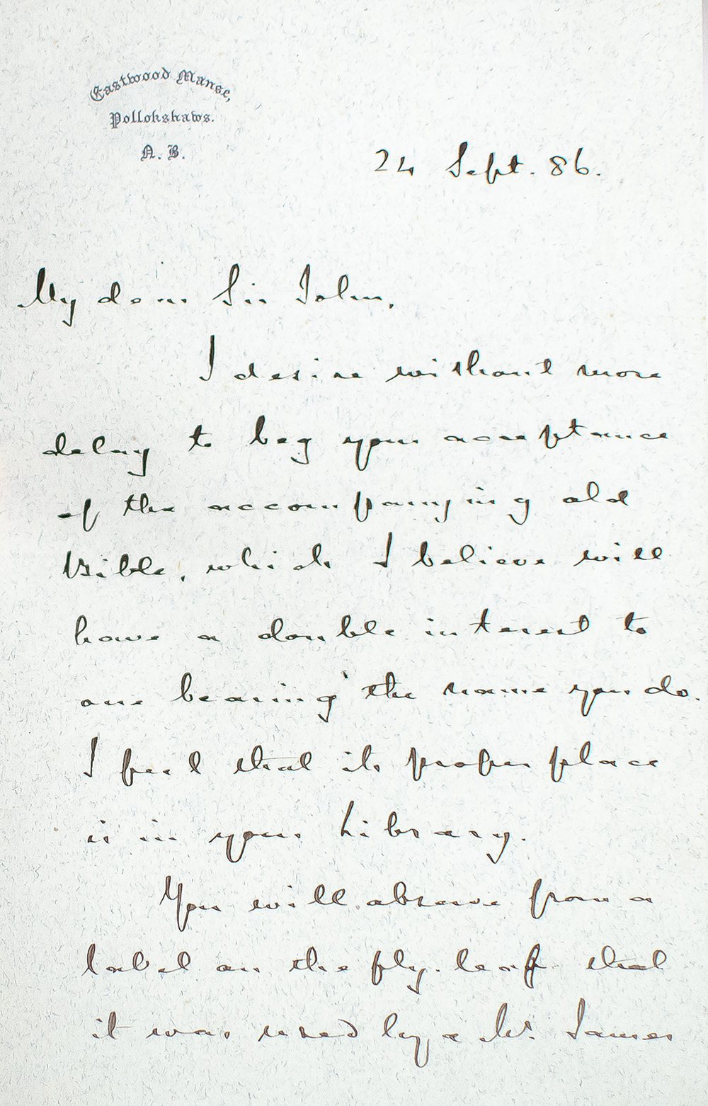 Rare 1672 edition of the King James version of the Holy Bible with Geneva Bible notes. Folio, bound in early purple straight-grain morocco with gilt titles and tooling to the spine in six compartments within double raised gilt bands, gilt ruling and scrolling to the panels, gilt-ruled turn-ins and inner dentelles, all edges gilt, text largely double-column, engraved additional title. Herbert 708; Wing B2285. Provenance: Reverend James Stirling (1709-1773), Minister of the Gospel of Glasgow, his copy (autograph note of provenance affixed opposite illustrated title); George Campbell (autograph presentation letter signed laid in); Sir John Stirling-Maxwell, Baronet (1866-1956), Scottish landowner, Tory politician and philanthropist. In good condition with rubbing and splitting to the hinges, additional title trimmed to plate margin with some minor loss and laid down, title and dedication mounted on stub, occasional repaired tears or marginal restoration. A very rare and desirable mid 17th century printing of the most influential version of the Bible.