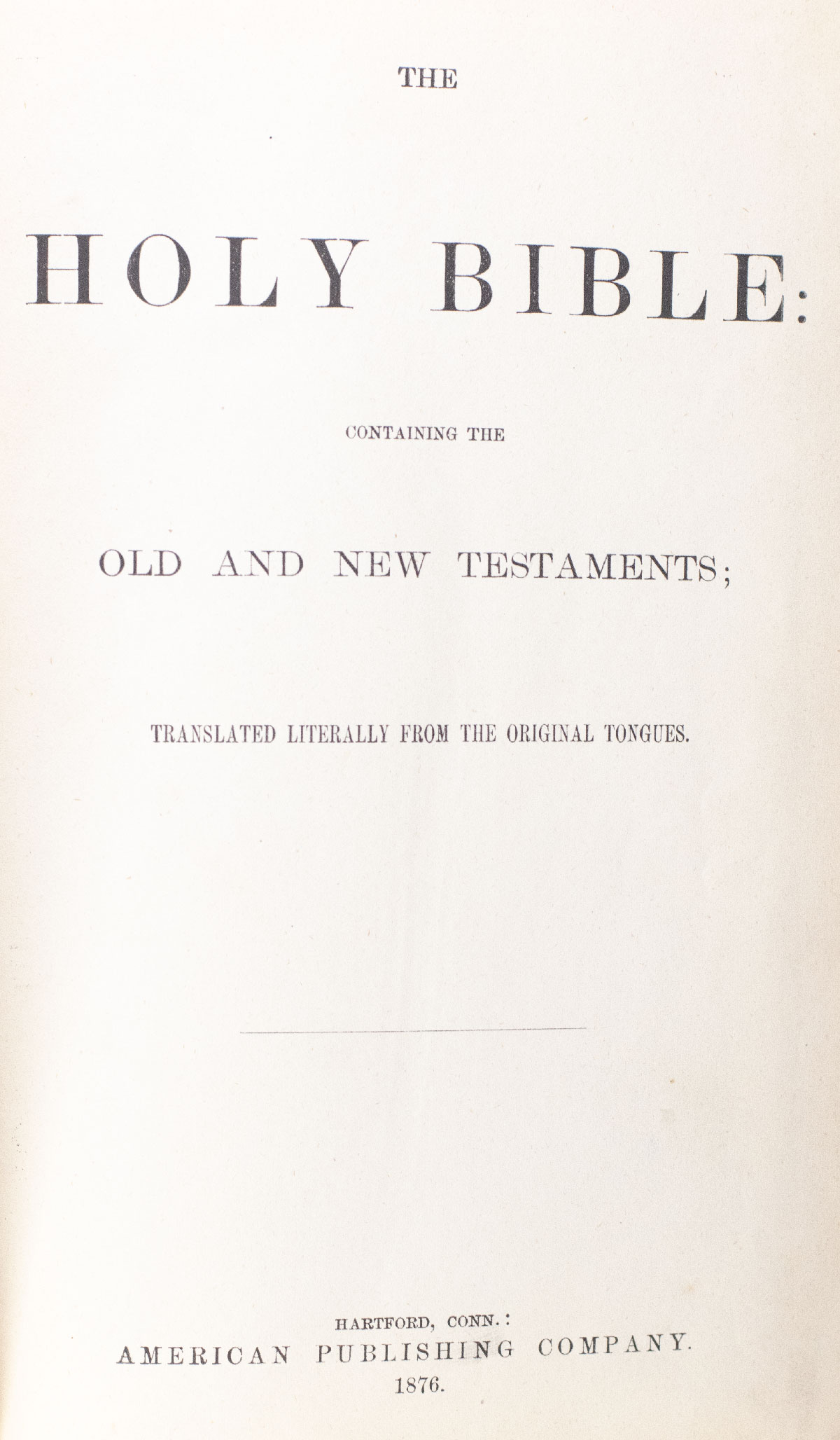 First edition of the first complete translation of the Bible into English done by a woman, Julia E. Smith (1792-1886), of Glastonbury Connecticut. One of 1,000 copies printed. Quarto, bound in full modern calf with morocco spine labels lettered in gilt, marbled endpapers. In near fine condition. An invaluable Bible for its period which remains a rare translation.